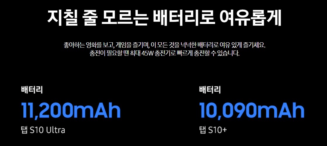 | 배터리 용량 | 11,200mAh, 45W 고속 충전 지원 | 10,090mAh, 45W 고속 충전 지원 | 8,000mAh, 45W 고속 충전 지원 |