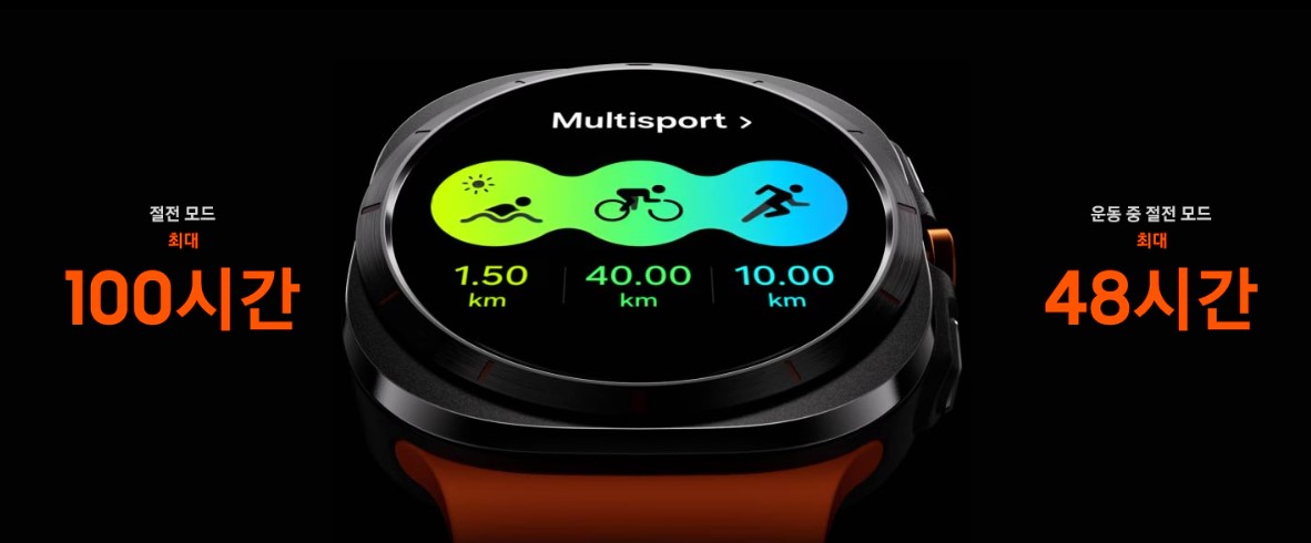 갤럭시 워치7 울트라는 590mAh 대용량 배터리를 탑재해 하루 이상, 길게는 최대 100시간까지 사용 가능합니다.
