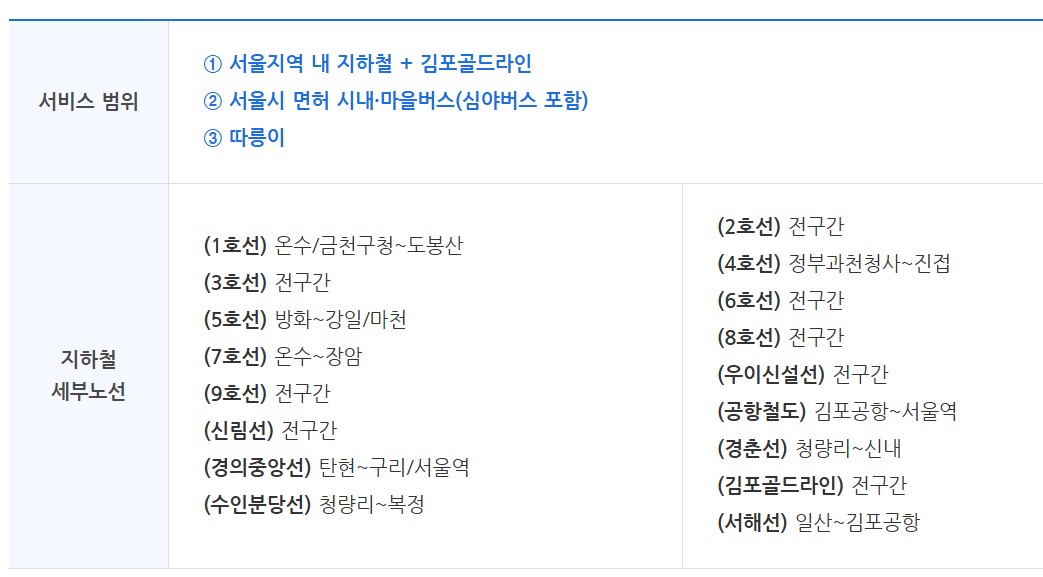 ✔ 하루 약 2,000원 수준으로 대중교통 무제한 이용 가능
