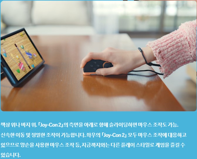| 조이콘2 시연 | 자석 부착, 마우스형 조작감, 옵티컬 센서 체험 |