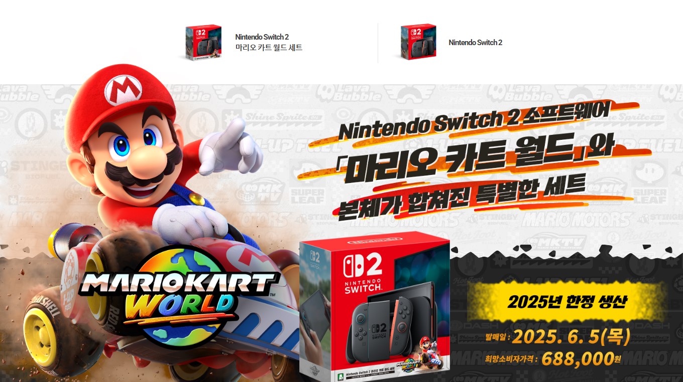- 마리오 카트 월드 번들 모델: 688,000원 (패키지 포함)