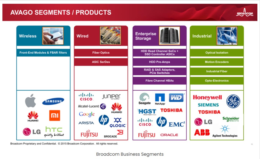 원래는 HP에서 분사한 아바고 테크놀로지(Avago Technologies)가 2016년 브로드컴을 인수하며 지금의 형태가 되었는데요.