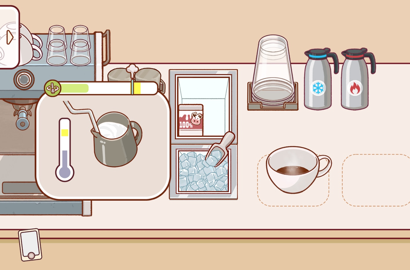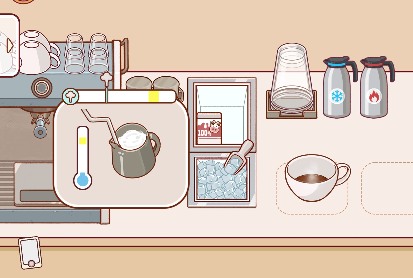 - 스팀 밀크를 준비하는 과정도 실제 바리스타의 작업을 반영하여, 거품을 내고 온도를 조절하는 단계를 수행해야 합니다.