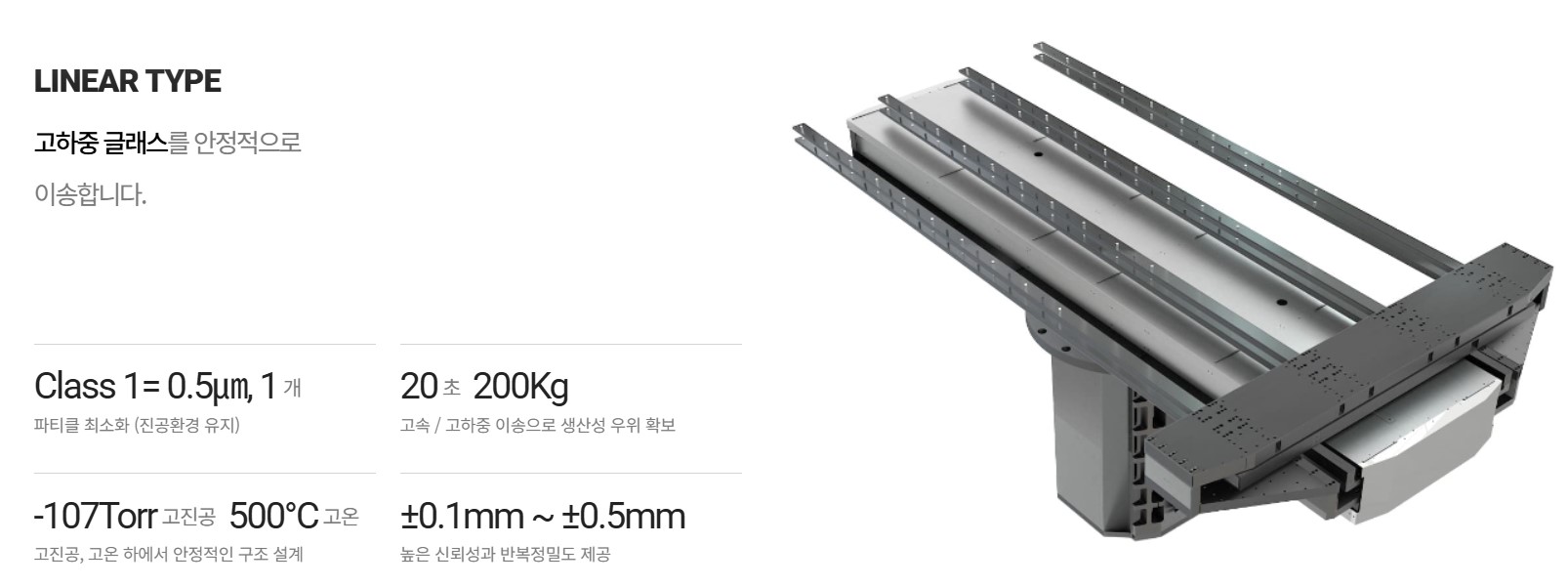 특히 유리기판 크기 3000×3300mm 수준의 11세대 디스플레이 생산에도 대응할 수 있는 기술력을 갖췄습니다.